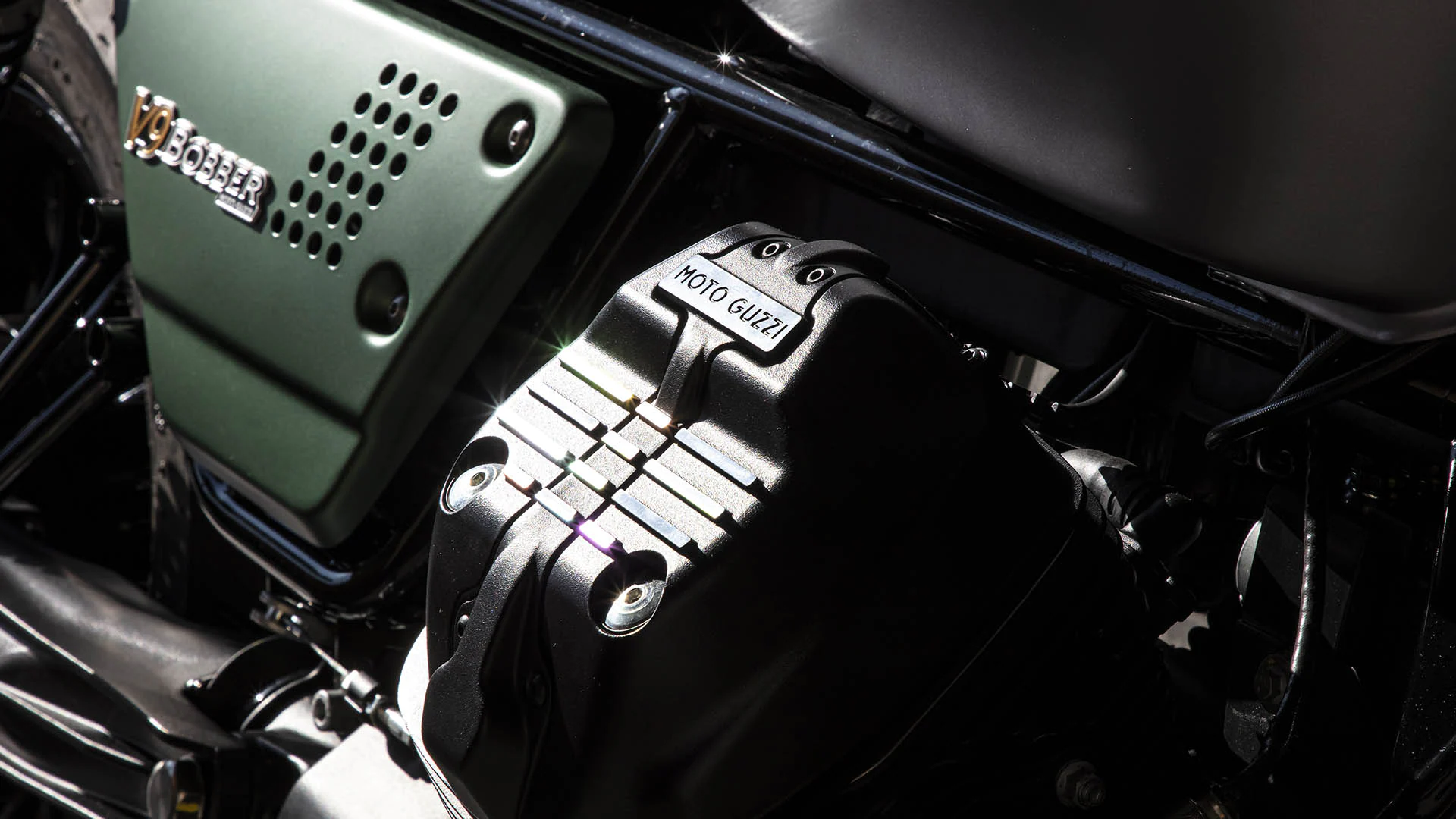 V9 BOBBER 百年纪念版配置新款850 cc 发动机,实现传统和创新间的巧妙均衡。动力和效率全新升级,车型配置硬核提升。新款迭代风冷90°横置V型双缸发动机,源自V85 TT全地形摩托所搭载的发动机,带来澎湃的动力表现。经过升级的车架以及强化后的车头转向区域能够更加稳固地支撑车辆,提高了车辆的稳定性和骑行精度。